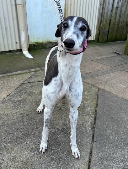Annie is an out and out sweetheart, well on her way to becoming a perfect pet. Despite her lack of experience living the pet lifestyle, Annie is a confident, happy girl who would make a wonderful addition to almost any home.You’ll always spot Annie by her wagging tail, always moving side to side, whether she’s sniffing around a new environment or making a new human friend! Annie is very human social and loves to meet new people. She’ll confidently approach (tail wagging of course!) and look for a little TLC. She will choose to calmly stand next to you for as long as you will pet her. She goes outside just long enough to finish her business, and then wants to come straight back inside. Annie has mostly socialised with other Greyhounds, however she has also been introduced to some small dogs. She got along just fine with the smallies and disengaged easily, overall she didn’t have much interest in them- she prefers human friends who can give her all the love and affection! Annie seems like she may be trainable with cats. She was initially very interested in the first cat she met, but after it slapped her, she backed away and didn't want to engage again. Annie is travels very well, she is cool, very very calm, and collected at all times. She is great on the lead and doesn't pull! Annie crates very well and is quiet in her crate. She has liked the small kids she has met. She is a gorgeous dog inside and out. Annie is confident, friendly, and sweet- what more could you ask for! Don’t hesitate to welcome Annie into your heart and home today.
