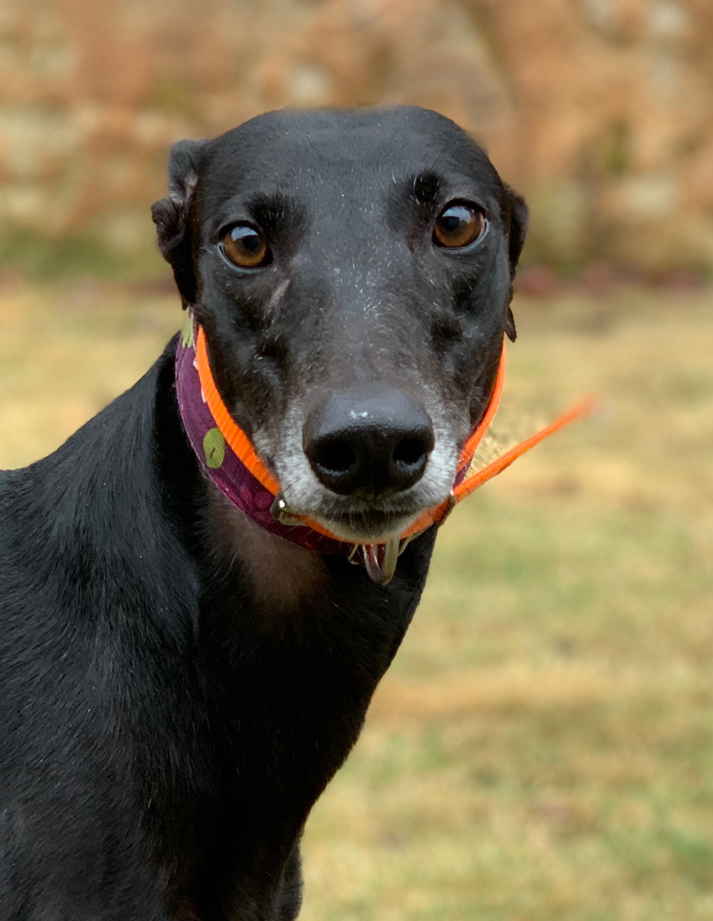 Harper just arrived from the Celtic Hounds Kennel due to the Sanford Orlando Kennel Club closing down. She raced all of her 99 races there. She was not a good racer and mainly placed at the lowest levels. She only ever won 2 races. Harper is a tiny girl that raced at just 57lbs. She will turn 4 on September 1st. Her sire is Flying Fired Up and her dam is Roc a By Shu Shu. She is a friendly and sweet little girl that is fun and playful. She was initially interested in the cat but only sniffed. She was correctable and lost interest after awhile. She is being fostered with cats and we think she is trainable with them. She is used to being around her trainers kids in her racing kennel. Harper was vetted at Oasis Animal Hospital in Mauldin and is ready for adoption.