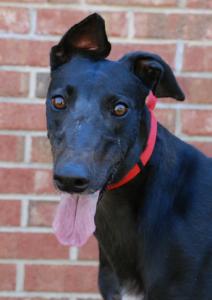 True is a pretty black female that raced at 69lbs. She only raced 18 races at Wheelng Downs in WV and Orange Park in FL and didn't win one of them and only placed in 2 of them. Her sire is the famous Trent Lee and her dam is Kay Carmella. True is a very calm, quiet girl that was well behaved on the trip up and is excellent on leash. She will turn 3 on April 15th. True passed her cat test at the track so can live in a home with them and should be fine to live with small dogs. She was fine with the kids she met too. She loves going for walks with her foster dad. She potties well on leash and is quiet in her crate.