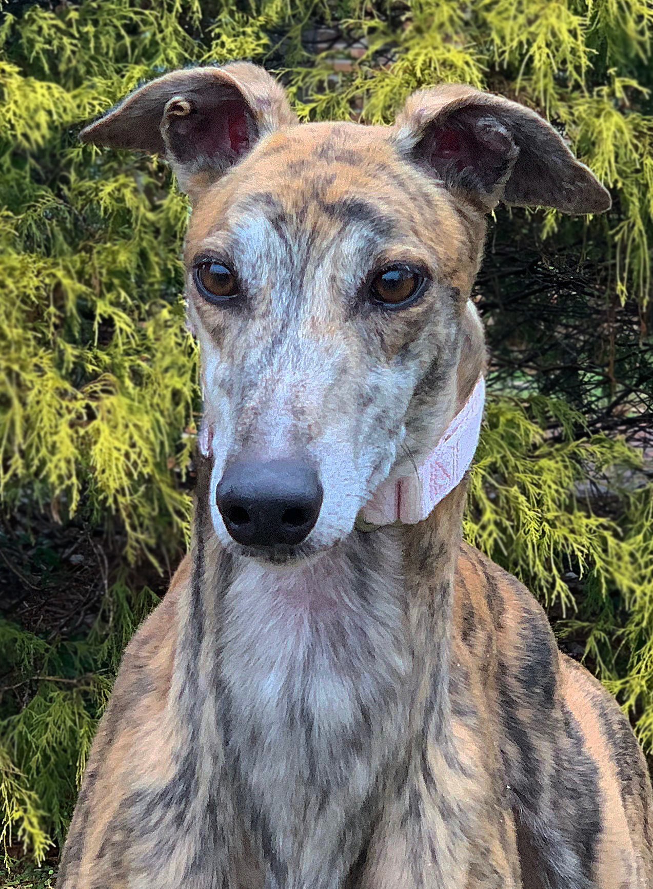 Tonto came in from the Daytona Beach Race Track. He also raced at Sarasota, Ebro, Flagler and Naples Ft Meyers Race tracks so has traveled around some. He raced 98 races and was pretty good getting up to the top A level a few times. He is a small male that raced at just 67lbs. He will turn 4 on June 16th. His sire is the famous Boc's Blast Off and his dam is Superior Rasta. Tonto seems like a very friendly, happy, little guy. He seems pretty confident and didn't seem nervous on the trip up. He wags and goes right up to everyone he sees. Very sweet. He has been in a home for about a month but he seems like he may have too high of a prey drive to live with tiny furry dogs. He has gotten too excited a couple of time playing with the Pomeranian in his home. He did not hurt her, but his family thinks he would do better in a home without a small dog. During his small dog test he got really excited to see the small dog at first, but it was always just appropriate sniffing, trying to figure out who this new small friend was. By the end of the meeting they were play bowing to each other trying to play. Tonto was initially quite curious about the cat as well, but backed off as soon as he got slapped and we couldn't get him to go back over to the cat, so he may do OK with a cat that won't engage in play with careful supervision at first. He seems like a very friendly, enthusiastic, playful dog that wants to meet anything and everyone.