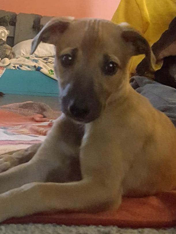 Jewel is a rare very young greyhound puppy that came to us from a greyhound farm with her sister Belle. They decided not to tattoo, register or race the litter and just pet them out. They were born on 10/31/18. When they are old enough they will be spayed by Hilltop Animal Hospital in Evans GA. They both came in for a family and will be staying together.