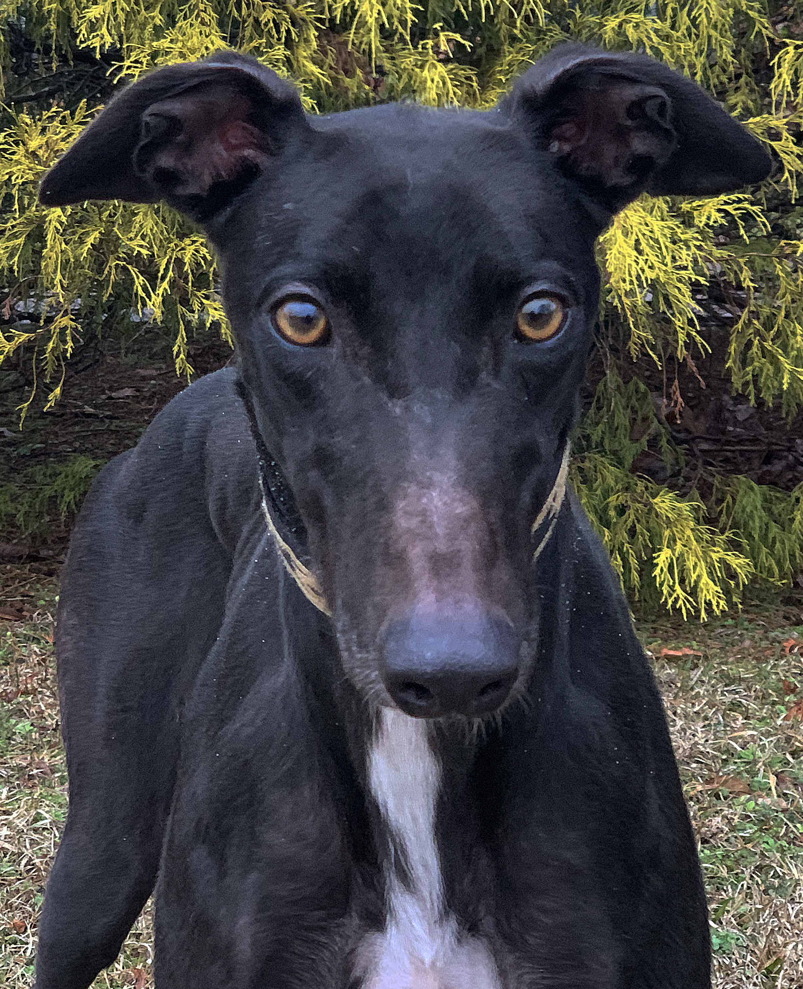 Bellagio just arrived from Waverider Kennel at the Daytona Beach Race Track. He also raced at Derby Lane in FL and Wheeling Downs in WV. He raced 120 races and was pretty good staying at A and B level for most of the time he was racing at Daytona. He is a small guy that raced at just 67lbs. He will turn 4 on May 2nd. Bellagio's sire is Kiowa WW Brother and his dam is WW Risky Whiskey. His trainer says that once he warms up to you he will follow you around and just lean into you for affection. He seemed a little overwhelmed when he first arrived but was still calmly friendly. But if you start petting him he will lean right into your leg and stare up at you wanting more petting. He is a very calm guy that is good on leash. Bellagio seems like a very sweet boy. He is fine with the small dogs he has been around and is very used to being handled by the kids of his trainer. He passed his cat test easily.