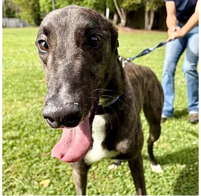 Marshall is arriving soon. He is an Australian guy that never raced. He was born on January 6th of 2024 so is just 2 years old. He is a beautiful dark almost brown and black brindle and is one of the tiniest males we have placed at only 57lbs. His foster family calls him Marshall because like a US Marshall he investigates everything. He is sweet and curious and likes older kids, other large dogs, being outside and running around. He doesn't like other dogs to bother him when eating. His foster home is working on that. Marshall also doesn't like sudden loud noises. Marshall should be small animal workable with close supervision. He is just very curious about everything he sees including cats and small dogs. More when we meet him. |