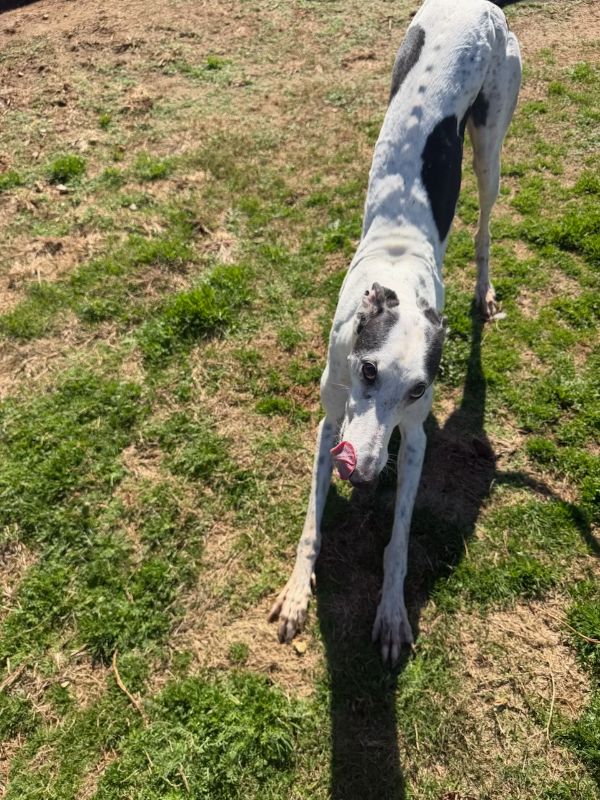 Disco Pants (Billy) is ready to boogie his way right into your heart! He is arriving soon from Ireland where he raced 63 races at Tralee, Shelbourne Park, Limerick, Cork, Mullingar, and Clonmel. He was a good racer winning 18 of his races and placing in many of the others. His last race was July 6th of 2024 and he has been waiting on a home since then. Billy raced at 76lbs and his DOB is March 15 2020. His sire is the famous Kinloch Brae and his dam is Bling Bling Lola. This very affectionate boy absolutely loves being close to his people. Whether it’s leaning in for pets, following you from room to room, or settling in for a cozy nap nearby, Billy is happiest when he’s sharing his space — and his big loving heart — with you.Billy walks nicely on lead and enjoys getting out and about. However, if a rabbit or squirrel makes an appearance, his inner athlete wakes up! A handler who can gently redirect him and keep a steady hold will do just fine. He gets too excited about cats to be able to live with them. Billy does well with quiet, well-behaved dogs and would thrive in a calm home where he can relax, feel secure, and soak up plenty of affection. If you’re looking for a sweet, loving companion with just the right amount of sparkle, Disco Pants (Billy) is ready to dance into your life! |