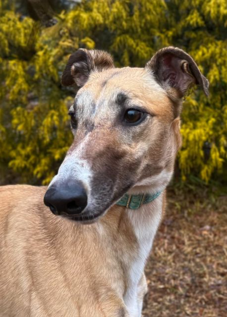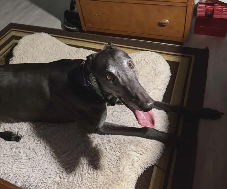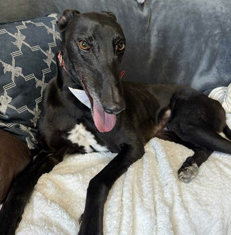 Disco Pants (Billy) is ready to boogie his way right into your heart! He is arriving soon from Ireland where he raced 63 races at Tralee, Shelbourne Park, Limerick, Cork, Mullingar, and Clonmel. He was a good racer winning 18 of his races and placing in many of the others. His last race was July 6th of 2024 and he has been waiting on a home since then. Billy raced at 76lbs and his DOB is March 15 2020. His sire is the famous Kinloch Brae and his dam is Bling Bling Lola. This very affectionate boy absolutely loves being close to his people. Whether it’s leaning in for pets, following you from room to room, or settling in for a cozy nap nearby, Billy is happiest when he’s sharing his space — and his big loving heart — with you.Billy walks nicely on lead and enjoys getting out and about. However, if a rabbit or squirrel makes an appearance, his inner athlete wakes up! A handler who can gently redirect him and keep a steady hold will do just fine. He gets too excited about cats to be able to live with them. Billy does well with quiet, well-behaved dogs and would thrive in a calm home where he can relax, feel secure, and soak up plenty of affection. If you’re looking for a sweet, loving companion with just the right amount of sparkle, Disco Pants (Billy) is ready to dance into your life! |
