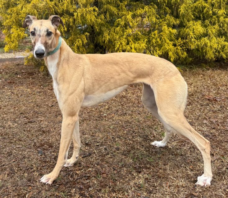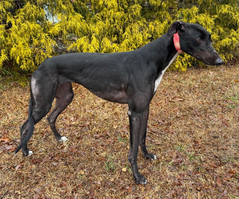 Retired racing greyhounds available for adoption through Greyhound Crossroads in Upstate South Carolina.