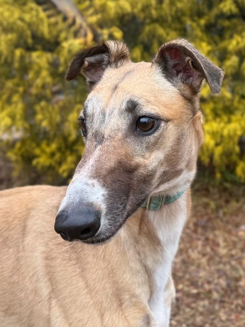 Buster just arrived from Australia. He only raced 7 races there and won 2 of them. His last race was December 4th 2023. He raced at 79lbs and is a tall, handsome, guy with a beautiful shiny coat. His sire is Dyna Double One and his dam is Lilac Izmir. He was born on April 16th of 2022. Buster is full of fun and loves to play with humans and other dogs. In Australia he lived with two retired greyhounds, a whippet and a Jack Russell and was very good with them. He is very social with other dogs and gets along with everyone. Buster was already home acclimated in Australia and was house trained there and had good house manners so he should be an easy addition to his new home. Whether it is a game of fetch, a run on leash, or just hanging out at home, Buster is is ready for anything. He does well traveling too. He was too interested in the cat to be able to live with them. We were able to redirect him some, but we would prefer a home with no kitties. Buster hasn't had long term exposure to kids although he really liked the kids he met. If you are looking for an outgoing, loving, playful dog, Buster is your guy! |