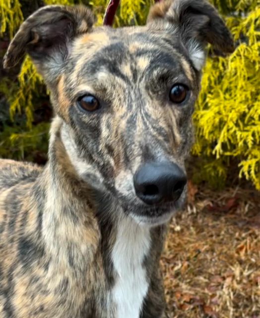 Hlos Intimidator is definitely not intimidating, and was actually called Jim at the farm. Jim never raced and came to us straight from the farm he was raised on in WV. He just wasn't interested enough in racing to ever make it to the race track. His Sire is RCK Goneinaflash and his dam is RCK Golden Grace. His sister Shear Volume arrived with him. Jim's date of birth is 4/12/24 so he will turn 2 in April. He is a very young guy that still has a bit of a puppy look to him. He never got an official racing weight but is around 75lbs. He is a very tall, narrow boy that is taller than most at that weight. His back touched the top of our large kennel. Jim is a sweet boy that seems to love people. He was a little overwhelmed by his first trip away from home, but seemed to handle everything remarkably well. He liked the kids he met. He was interested at first in the cat, but seemed mostly curious and appeared very trainable with some supervision at first. He was good with the small white dog he met so should be fine to live with small dogs too. Jim seems curious about his surroundings so we think he is likely to gain confidence fast. He seemed pretty calm for a pup and got along well with the other greyhounds. He hasn't been pushy or demanding but does love attention. |